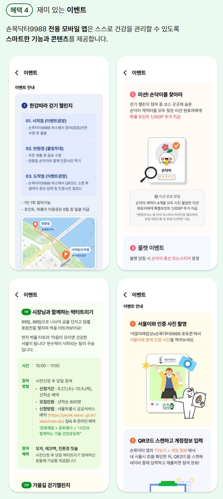 손목닥터 9988, 서울시민의 건강을 위한 특별한 선물입니다. 건강도 챙기고 돈도 벌 수 있는 이 기회, 놓치지 마세요! 지금 바로 손목닥터 9988에 참여하고 건강하고 활기찬 일상을 만들어보세요.