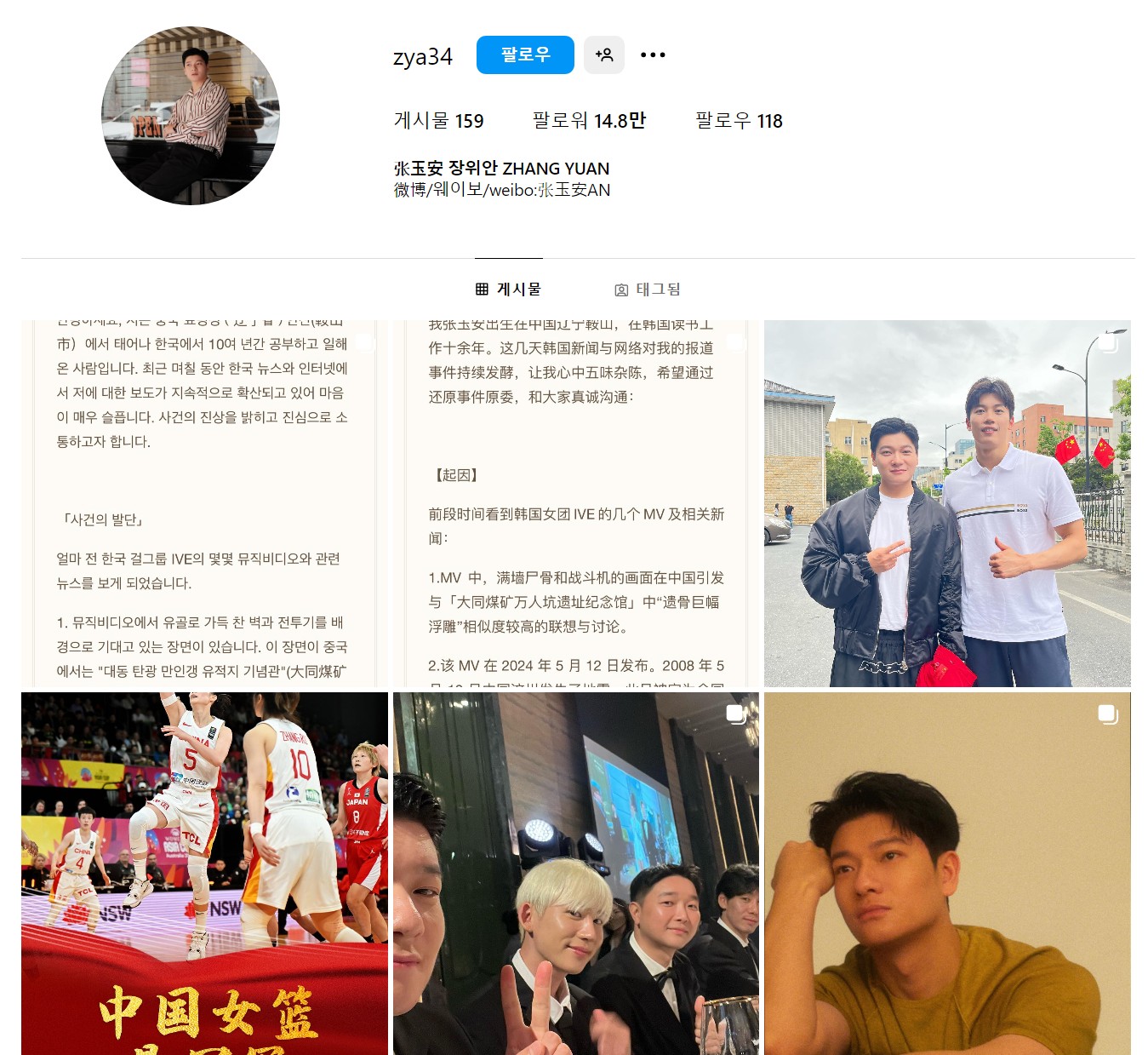 장위안 사과문 전문